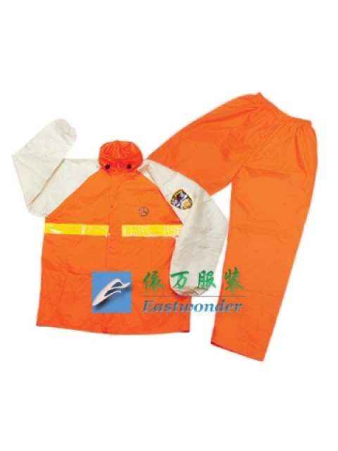 環(huán)衛(wèi)工人、交通處理等需要反射環(huán)境光、反射車燈光、防雨的工作人員,適合于四季雨天穿著。